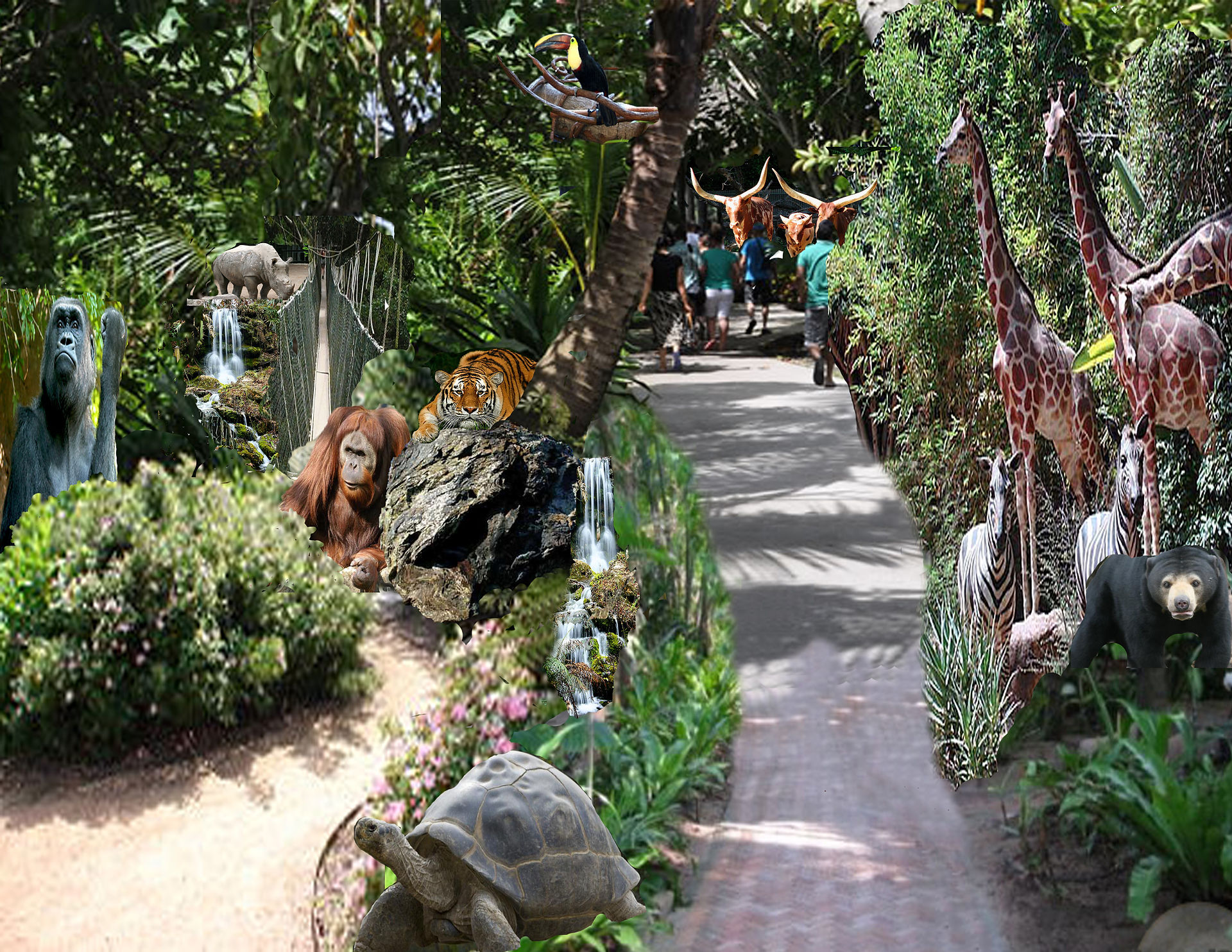 Enjoy the zoo atmosphere where none of the animals are in a cage. Animatronics animals are throughout this area, with lush landscaping, detailed descriptions of all the animals and habitats. Take your picture with a giraffe or a roaring lion. There is also a petting zoo where you can have a hands on experience with the live baby animals. Listen to the soothing music and take a walk over the canyon rope bridge. Enjoy water features, light and music shows, maybe the animals will sing along. Don't forget a bite to eat, shopping and souvenirs. Have a nice peaceful walk and rest before your next Metal show!!